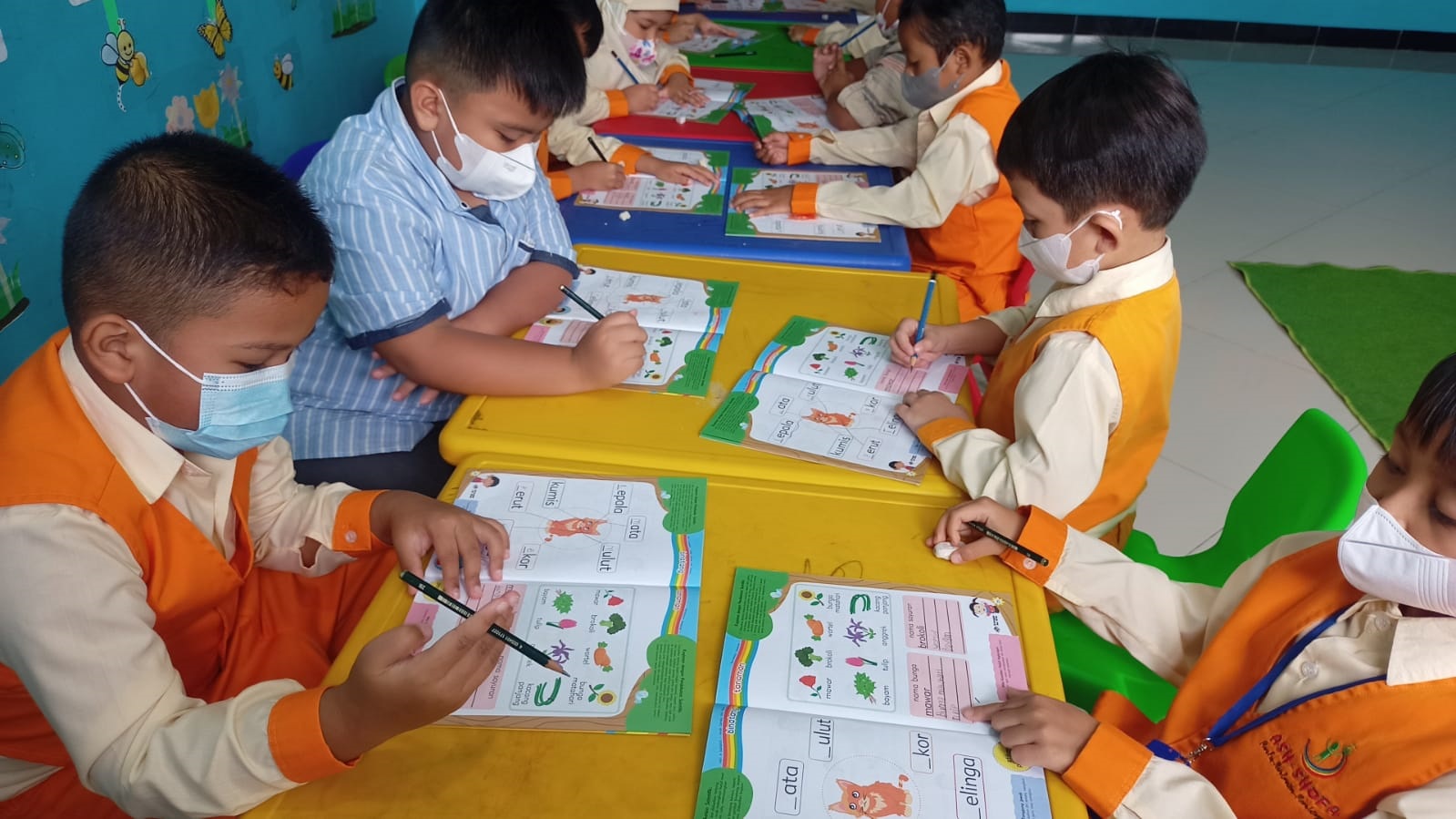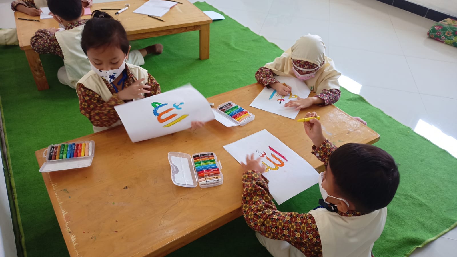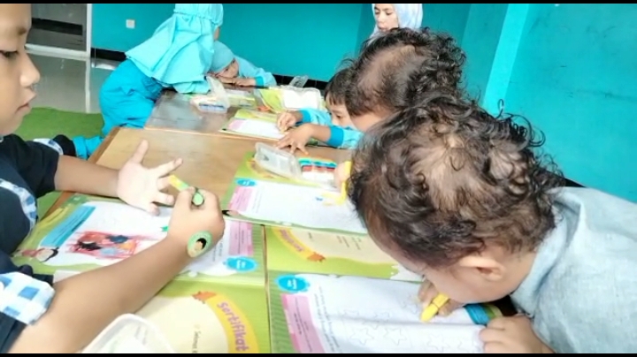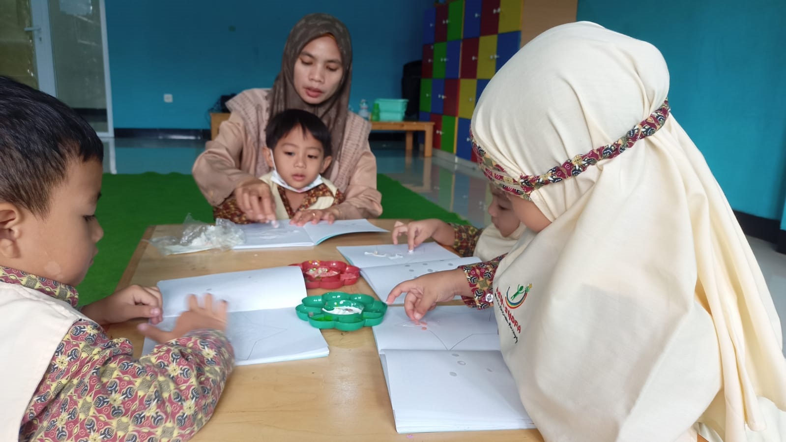 Pembelajaran di Sentra Seni (Kolase gambar bintang)