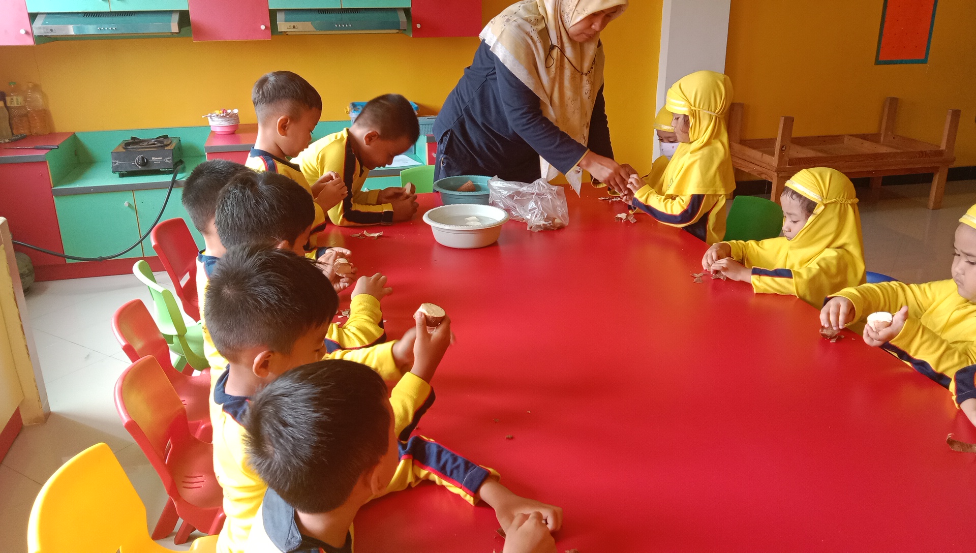 Pembelajaran di Sentra Masak (Mengupas kulit singkong) 1