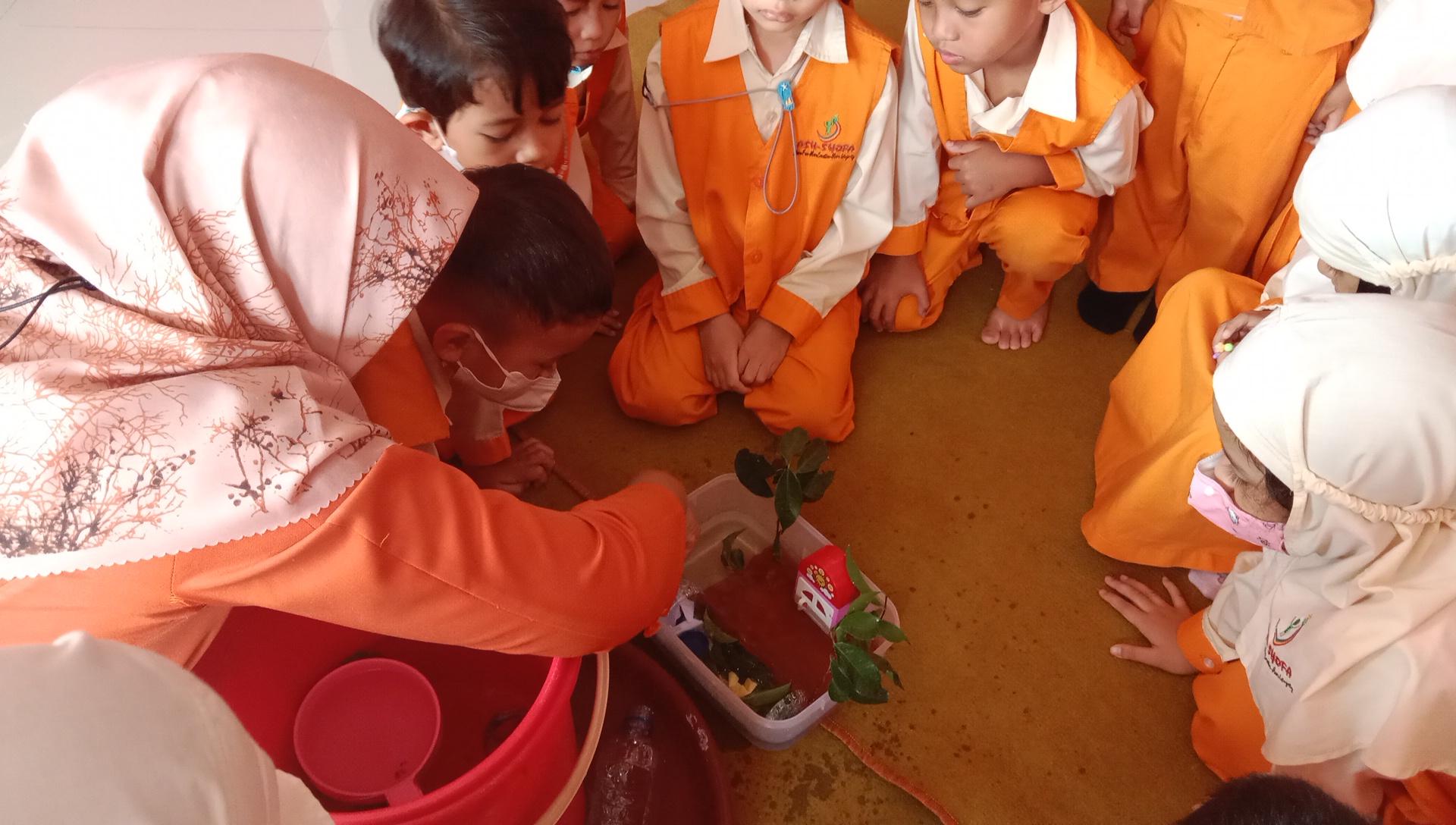 Pembelajaran di Sentra Sains (Proses terjadinya banjir)